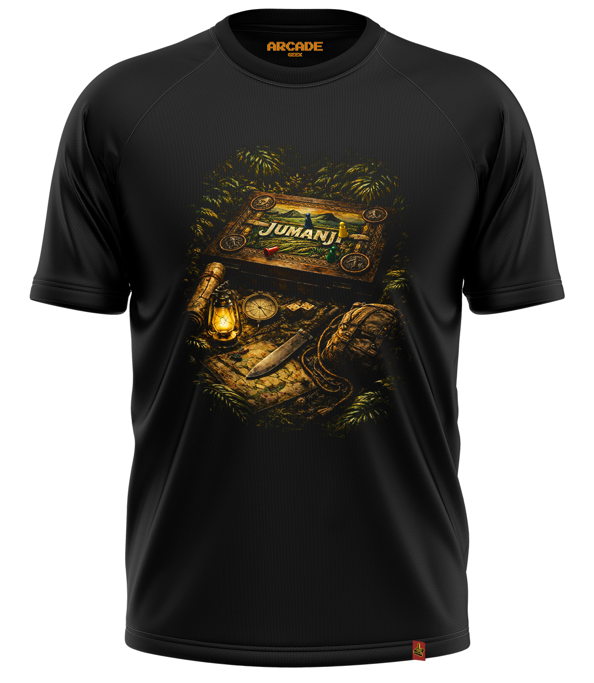 A Arcade Geek desde 2018 tem como missão levar para o fã, produtos de qualidade com estampas daquele tema favorito, que dificilmente acha em lojas convencionais, por isto de fã para fã desenvolvemos artes variadas para nosso publico, sempre nos aprimorando para que tudo esteja perfeito para você. Camiseta Jumanji retrô inspirada no clássico filme de aventura. Estampa exclusiva com tabuleiro, selva e exploração. Presente perfeito para fãs de cinema, nostalgia e cultura geek.