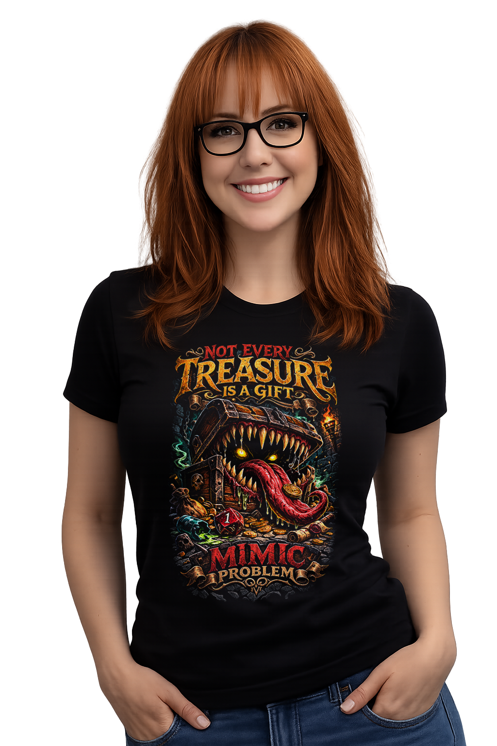 Camiseta RPG D20 Mimic Baú Monstro Fantasia Chest Gamer Geek Nerd roll for adventure