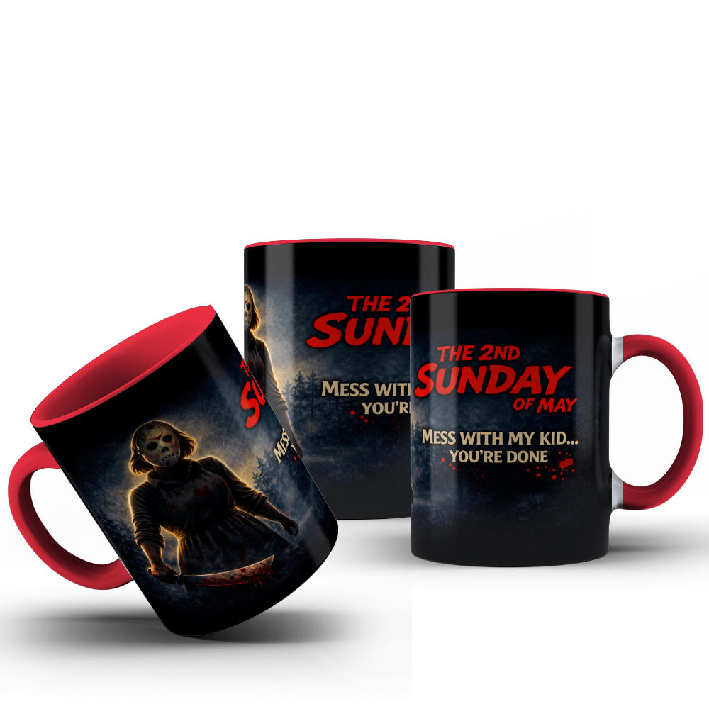 Com a frase “The 2nd Sunday of May” e a mensagem “Mess with my kid… you’re done”, a arte transmite proteção, atitude e personalidade forte — perfeita para mães que não passam despercebidas.