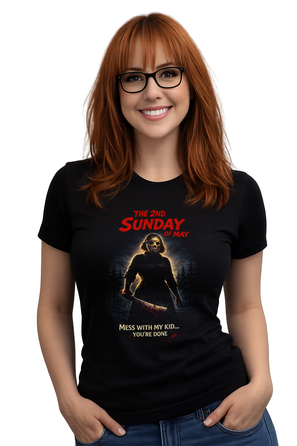 Com a frase “The 2nd Sunday of May” e a mensagem “Mess with my kid… you’re done”, a arte transmite proteção, atitude e personalidade forte — perfeita para mães que não passam despercebidas.